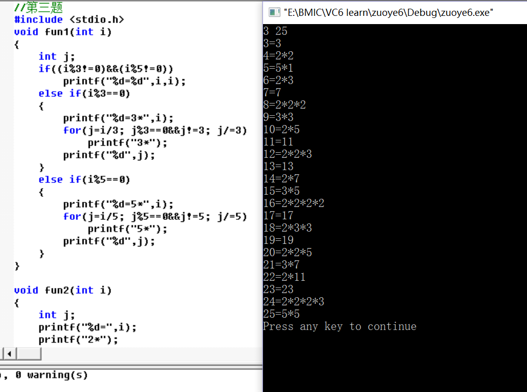第三题思路:先将2的倍数筛选出来,剩下的就是素数+3的倍数+5的倍数。写两个函数第一个函数是筛选出2的倍数,这里要注意一下最后一个数需要判断一下是否为3的倍数。同理在不是2的倍数中要将判断一下是否为3的倍数和是否为5的倍数,剩下的就是素数。