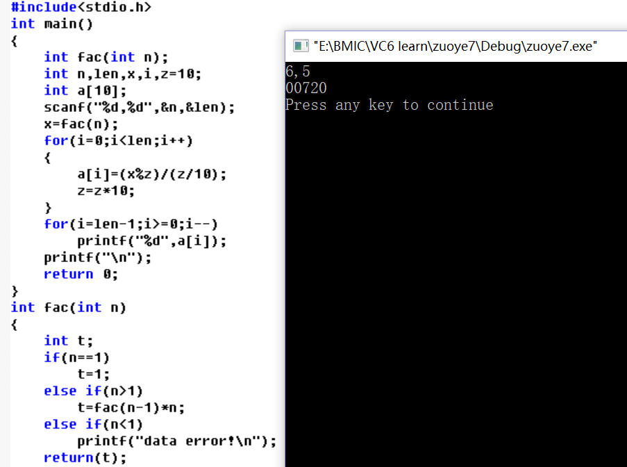 思路:递归算出阶乘之后将其拆分成一位数,从个位插入数组,倒序输出。这题只做出%70数据n<=30,len<=10.后面会尝试一下100%数据n<100,len<=10000