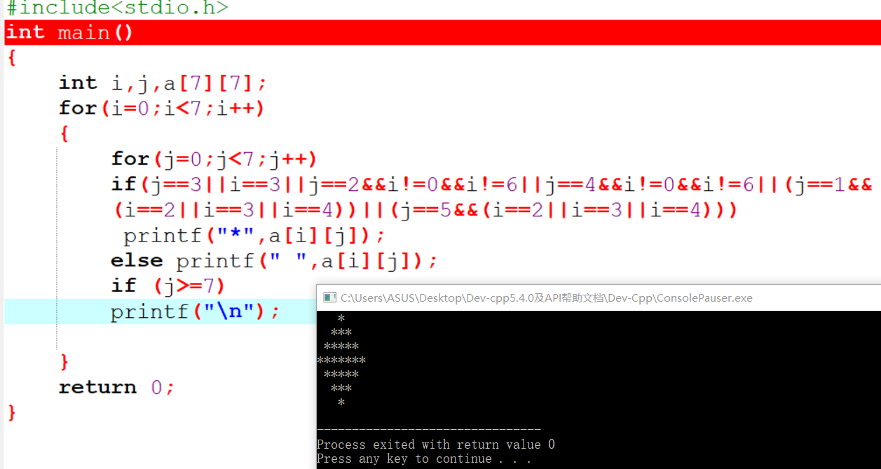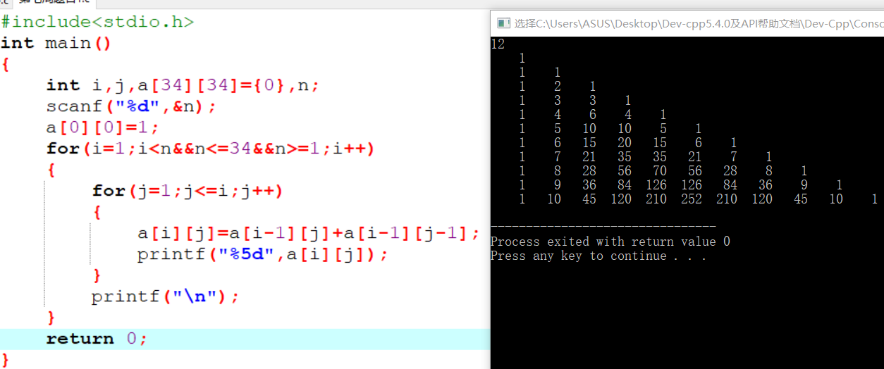 ②程序运行过程是从上而下的,先给数组里所有的赋初值为0,后来在输入n后又给其中的a[0][0]赋值为1,不矛盾。
