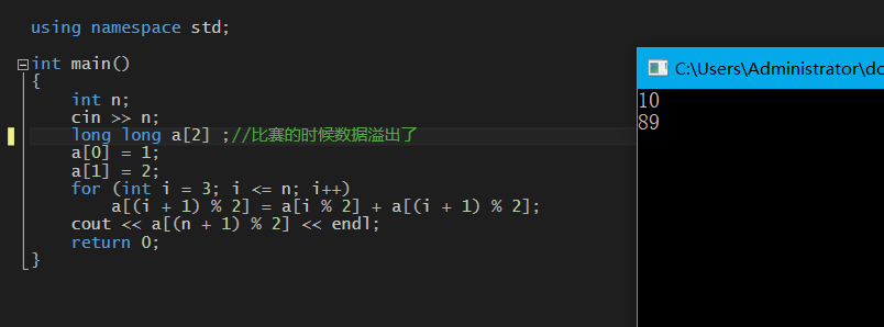 考试的时候我通过写出多个数列,发现后一个数列的情况是前两个数列情况之和的结论,于是直接用解斐波那契数列的方法来解这道题。但是由于粗心大意,没有准确的推算结果的可能取值范围,考试的时候是用int型来存这个数列,很显然,当n足够大的时候,会发生溢出。学长还在周六的时候提供了另一种解题思路,用深度搜索的方法来得出结果,我将这种算法写出来了,但是时间复杂度没控制好,准备以后再优化。